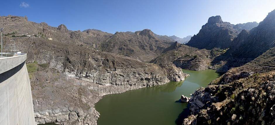 Esta é a maior barragem das Canárias, propriedade da Comunidad de Aguas La Lumbre, com um muro de betão vibrado de 120 metros de altura e capacidade para reter 32 hectómetros cúbicos, como exemplo oito vezes o de Chira pelo qual já passámos. A barragem encontra-se no nível médio alto do barranco de Arguineguín, que tem o nome de Soria a montante da barragem. Terminamos o nosso percurso atravessando a barragem na aldeia de Soria.